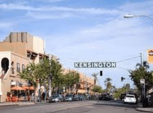 - The first goals of this new organization included purchasing flags for the Kensington business district along Adams Avenue, erecting a sign across Adams Avenue marking the business district, and annexing the area into the City of San Diego.